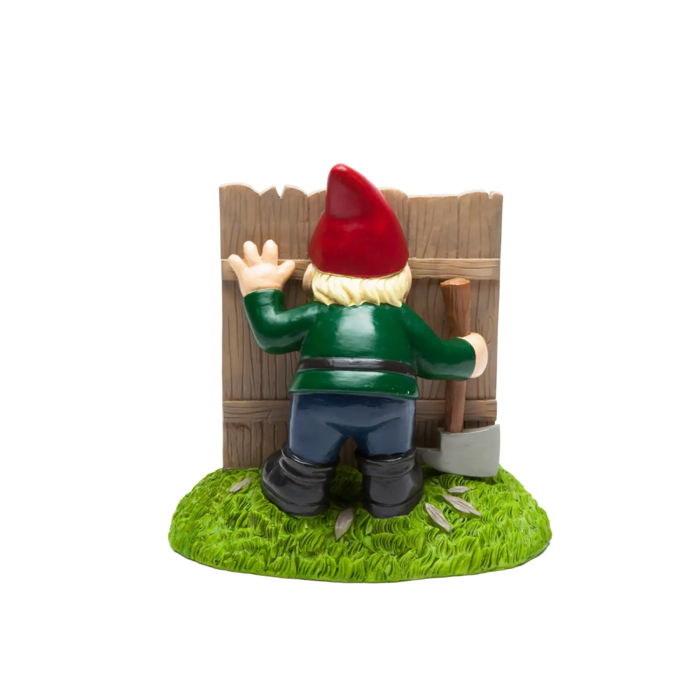 Heeeeeeeeere’s Gnomey! Perfect for the backyard, garden, and the movie fanatic’s collector shelf, our side-splitting parody of a certain horror-thriller puts a lighter touch on one of the most iconic scenes in movie history. It’s action packed on both sides of the fence, letting you see both sides of this adapted scene, making the perfect “easter egg” when people see it on your property.